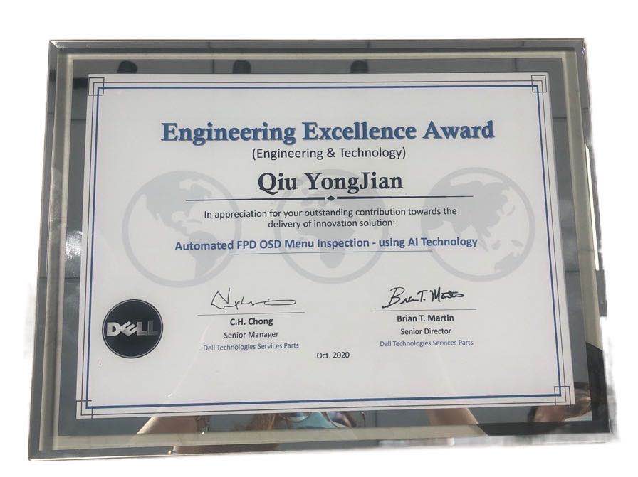 10月16日,戴爾授予長(cháng)江電子(zǐ)優秀項目獎。獲獎項目為(wèi)基于AI技術的(de)FPD OSD自(zì)動化檢測項目。項目主要參與人邱永健、袁永平、葉成隆。