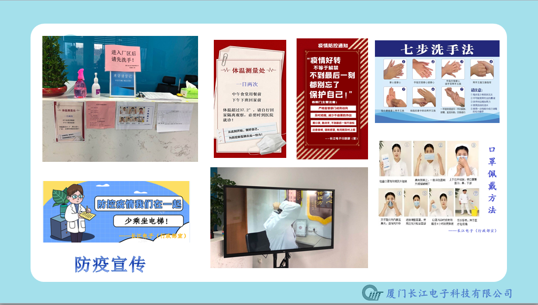 Since the outbreak of the epidemic, Changjiang Electronics has quickly established an epidemic prevention emergency team to obtain the latest information on the epidemic situation, formulate an epidemic prevention plan, and adopt a series of safeguard measures in advance. Changjiang Electronics adopts the anti-epidemic policy of careful, practical, strict control, and flexible care, and strives to properly control “the entrance and safety net” and warm the heart of the people, and implement the epidemic prevention