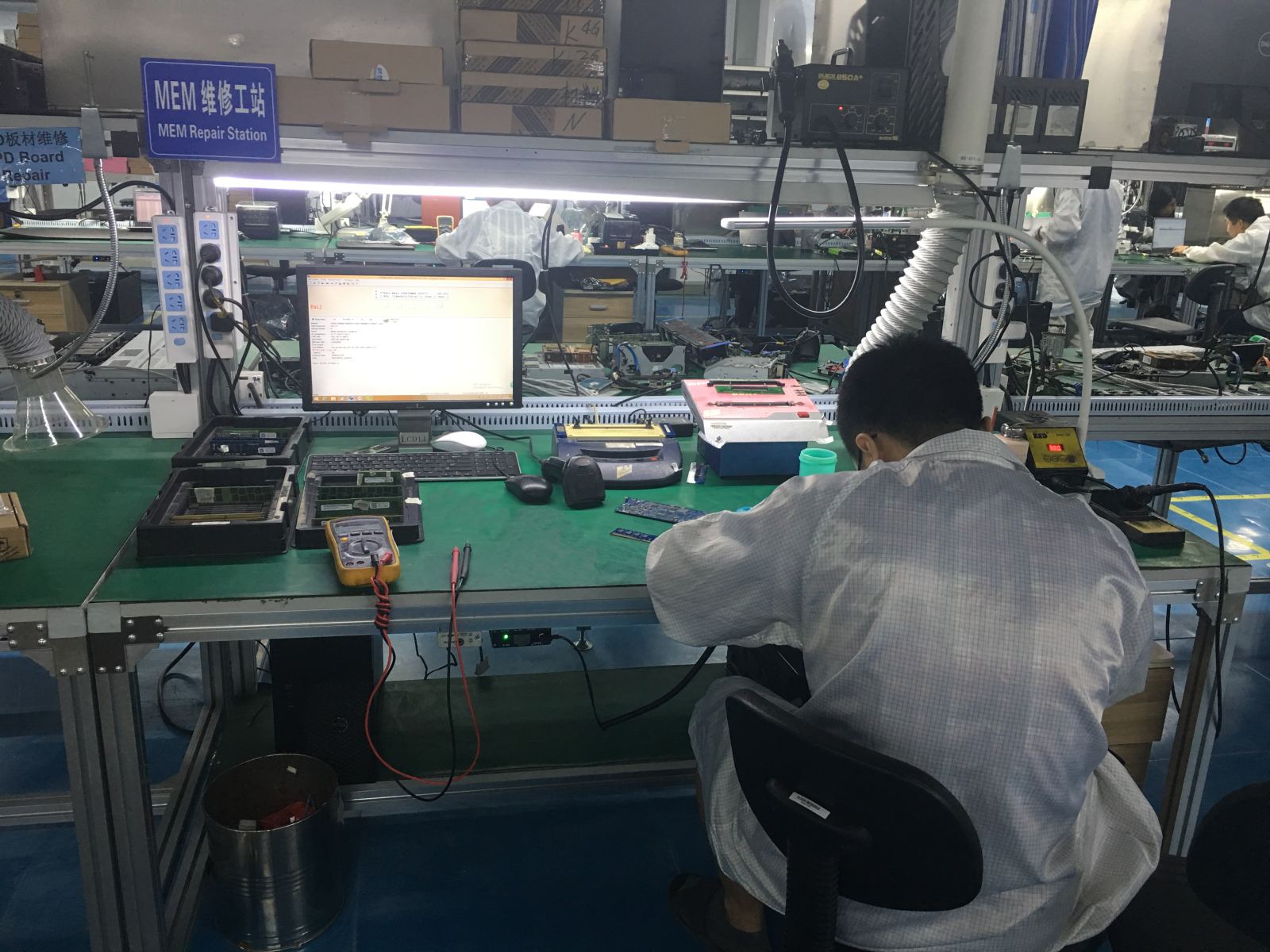 The department consists of a number of senior repair and test engineers and is equipped with EUREKA 2400, HMU, SP3000 and other advanced automatic test equipment and professional memory test room. Includes superior DDR3/DDR4 memory detection and repair capabilities.
